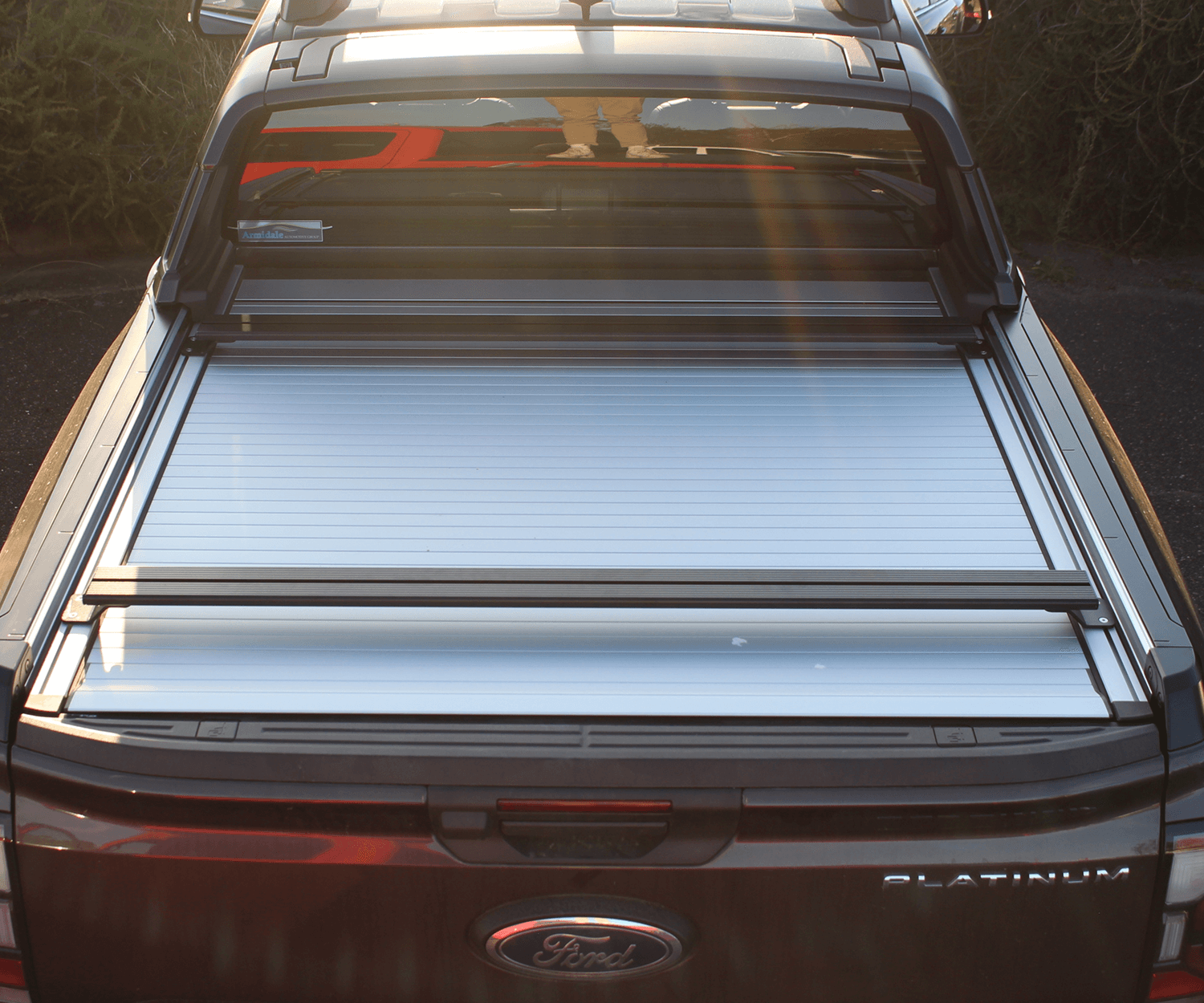 Cross Bar Kit to suit roller covers with load tracks. Load rating =100kg per cross bar. Super low-profile to keep tall loads as low as possible, only rising 47mm in total height. For vehicles with a sailplane, the cross bars can be installed within the internal sides enabling storage right up to the cab window.